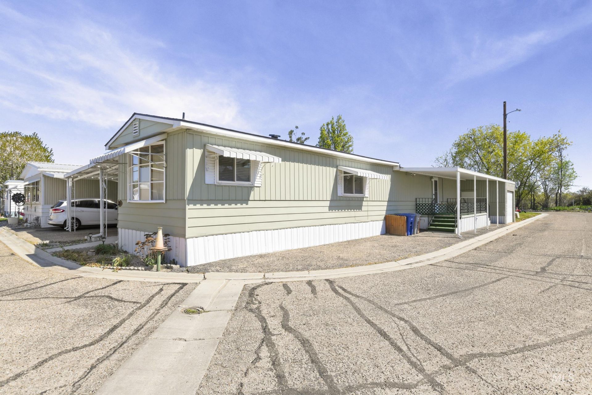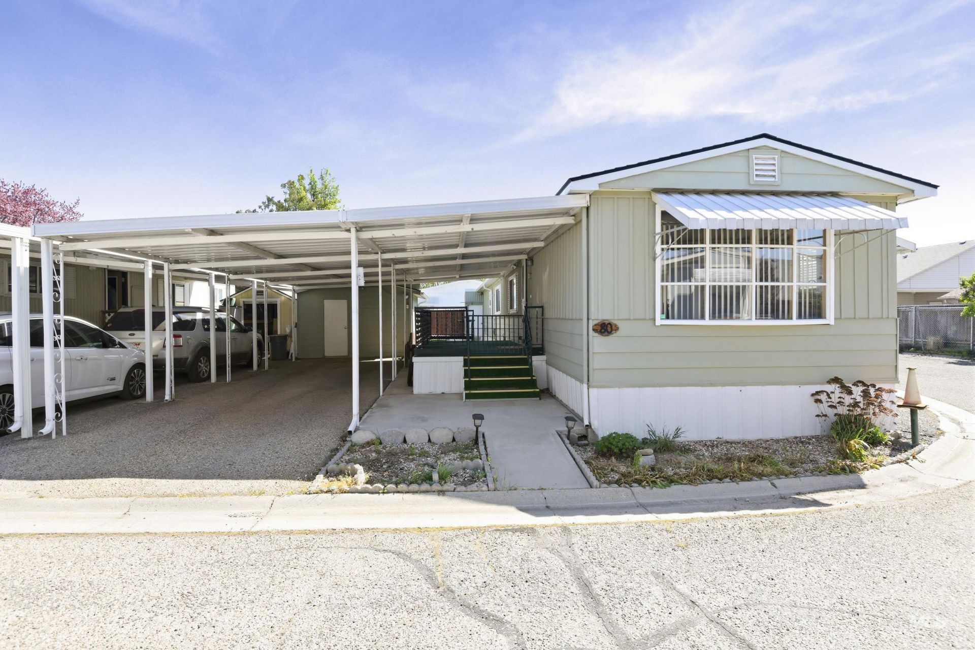 Seller is willing to look at ALL OFFERS on this pristine condition home!!! Please submit you highest and best offer! Located in a desirable 55+ community, this home offers convenient access to shopping, dining, and everyday amenities. It stands out with features rarely found in the area, including a single-car garage, a small workshop space, and an additional covered carport.Recent upgrades provide added value and peace of mind, including a newer furnace and heat pump, updated gutters, a brand-new sprinkler system, and a roof installed within the past five years.Step outside to enjoy a beautifully updated back patio?perfect for relaxing evenings?or take advantage of the spacious yard with room for gardening. Situated on a corner lot and enclosed with a 6-foot cedar fence, this property offers both privacy and functionality. The park management is offering 3 free month space rent for all homes closed in April!