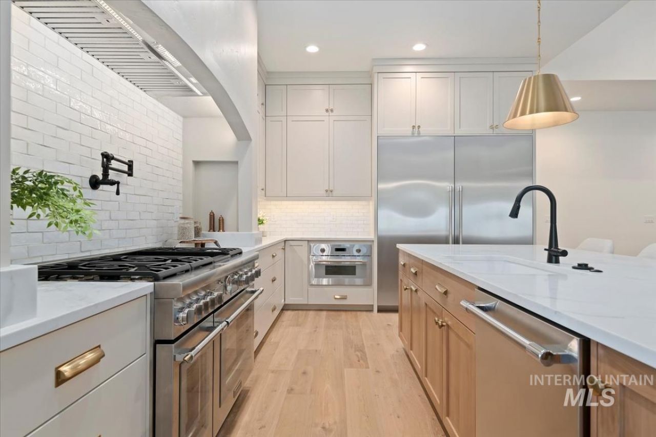 This newly completed masterpiece by Cook Brothers Construction in Shingle Creek Trail Estates showcases superior design and high-end finishes throughout. Step inside to discover a bright open floor plan featuring beautiful engineered hardwood floors and stunning vaulted beamed ceilings in the great room, complemented by a stylish entry wall accent. The gourmet kitchen is a chefs delight, equipped with top-of-the-line Thermador appliances, a convenient pot filler and butlers pantry with prep sink, flowing seamlessly into an oversized dining area. Outside, the expansive .32-acre lot boasts an amazing covered back patio perfect for entertaining, and the highly sought-after RV Bay offers unmatched utility. Located in the heart of Eagle, Idaho, this home offers ultimate convenience?you are just minutes from the fast-growing and vibrant downtowns local businesses, dining, and shops, with easy access to the scenic Boise River Greenbelt. With only 9 homesites available in Shingle Creek Trail Estates, dont miss your chance to own a custom home in this exclusive location!