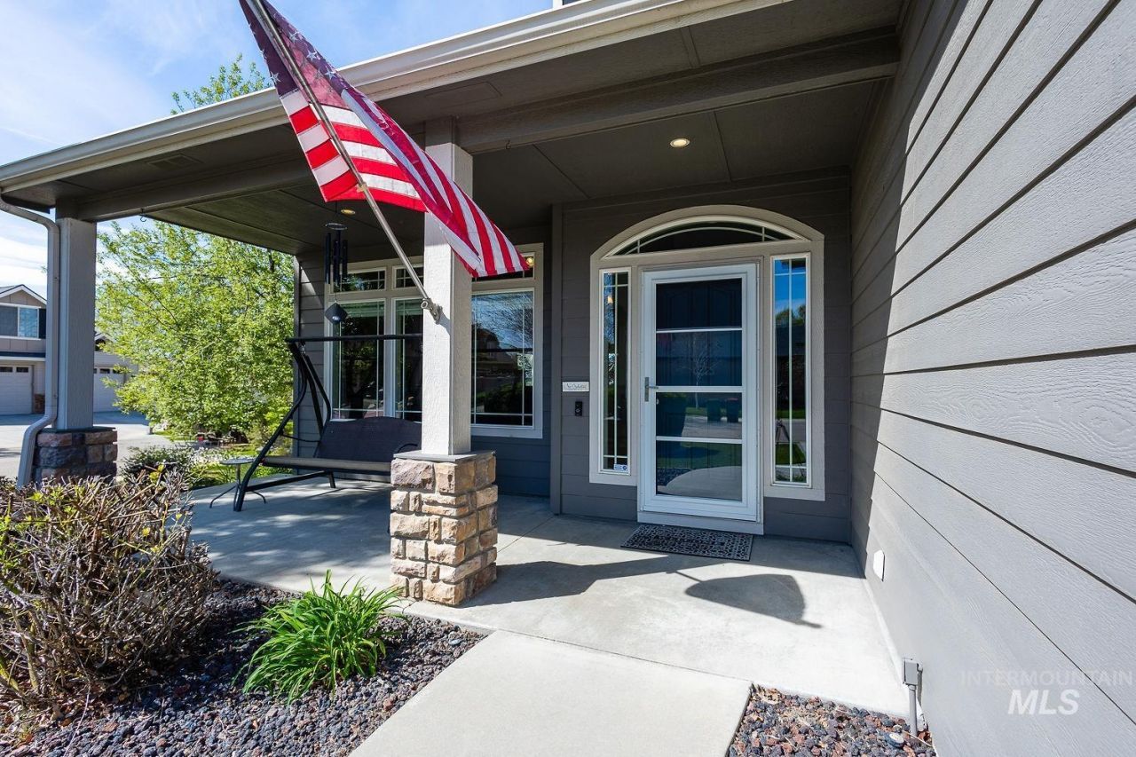 Youve GOT to see the beautiful updates in this south Meridian home located on a corner lot in Sutherland Farms subdivision which includes a private park, walking paths and a fishing pond! Master is on the main floor and has hardwood flooring, a lovely tray ceiling and an incredible walk-in closet, complete with shoe racks, shelving, etc. The master shower has been recently updated and theres a separate corner soaker tub. Three bedrooms upstairs PLUS a large bonus room provide so many options. The kitchen has stunning granite countertops and nearly-new appliances (w/i the last 5 years) plus new garbage disposal. Lots of light streams through thoughtfully placed windows and glass sliding door, but if you want privacy...simply close the new, quality blinds installed throughout the home. The HVAC/AC and water softener were new in 2023. Electric, tankless water heater is located in laundry room. The three-car garage has epoxy flooring and shelving galore. Concrete curbing, full vinyl fence with gates on both sides of the home and full automatic sprinklers. The back patio has extended stone work, perfect for a portable fire pit. The waterfall feature adds a peaceful feel to this already incredible back yard. Existing hot tub pad off the patio is ready to go. Location could not be any better with easy access to I-84, hospitals, the Village and TopGolf all just minutes away!