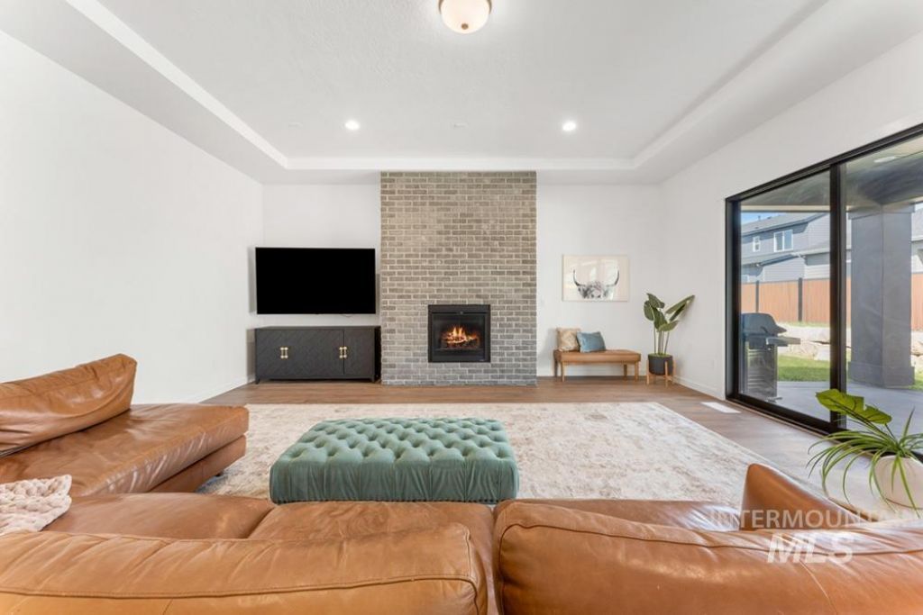 A stylish & bright nearly new home with upgraded finishes, fixtures & appliances! Set at the end of a cul-de-sac, this single-level home offers the perks of new construction with a level of finish that goes beyond builder grade. Built by Toll Brothers as part of their luxury Riverbend collection, the home showcases thoughtful upgrades & intentional design. Tall ceilings & wide plank LVP flooring create a bright, open feel. The kitchen anchors the home with quartz countertops, warm brass hardware, shaker cabinetry & a full suite of stainless steel appliances, including double ovens, gas cooktop, microwave drawer & Café refrigerator. The great room is centered around a gas fireplace. Triple-stacking sliders open to the spacious backyard. The primary suite is privately positioned, offering a sophisticated ensuite bath with dual vanities, soaking tub, & frameless walk-in shower. Additional bedrooms all have attached baths, 2 of which are ensuite. Set on a .37 acre lot, the backyard offers space that is increasingly hard to find in newer construction, with room to add a pool, outdoor kitchen, or extended entertaining areas. Split 3-car garage provides ample space for cars, tools, & gear. Located within a fabulous community with a neighborhood pool, park, playground, & pickleball courts, the home also benefits from a central location with convenient access to both Star and Eagle.