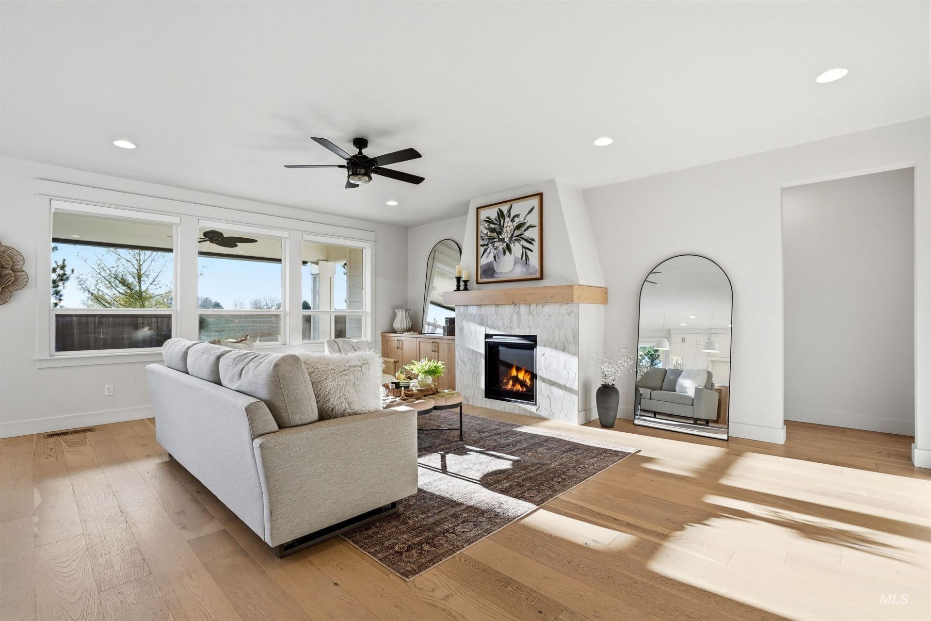 FAIRBOURNE | OPEN HOUSE 4/11?4/12-Sat12?3&Sun1?4 Welcome to this beautifully maintained modern farmhouse in highly sought-after, centrally located Fairbourne community?where comfort, style & functionality come together effortlessly.A grand front porch sets the tone, inviting you into a thoughtfully designed interior featuring a private office, expansive family room w/cozy fireplace & stunning chefs kitchen.Designed to impress, the kitchen showcases abundant custom cabinetry, an oversized island, quartz countertops, farmhouse sink, gas range & a spacious walk-in pantry w/additional prep space.The open-concept layout seamlessly connects the kitchen, dining, and living areas.Retreat to the main-level primary suite, offering a spa-like experience w/dual vanities,dedicated makeup counter, soaker tub, full tile walk-in shower & generous walk-in closet. Upstairs, youll find a versatile bonus room w/huge storage closet, built-in desk,4 well-sized bedrooms & 2 full bathrooms-both w/ dual vanities & separate tub/toilet areas for added functionality. Step outside to your private backyard oasis, complete w/covered patio ideal for hosting or relaxing. The 3+ car garage w/2 car charging ports provides ample room for all your Idaho toys.Enjoy everything friendly Fairbourne has to offer, including scenic rim walking paths w/stream &picnic area, HOA hosted community gatherings,community pool&park.