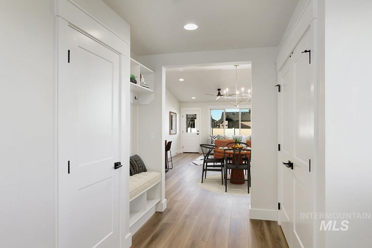 The TROON- 3-Car MODEL| Blackrock Homes. Located on corner homesite w/spacious backyard. Enjoy COMMUNITY POOL, pickle ball courts, walking paths, community dog parks & playground. Located in the gated neighborhood: The District at Skybreak Estates w/private pickle ball court, dog park & private streets. Featuring elevated finishes; upgraded cabinets, Bosch appliances, upgraded lighting plumbing & flooring. Baths feature tile floors, tile showers & under mount sinks. Generous sized great room, kitchen & dining room perfect for entertaining. Private guest suite & 3rd bdrm or office space gives you everything you need and nothing you dont. 3 car garage. Located on corner homesite w/one neighbor. Captures corridor views of the Boise Front foothills. Keyless door lock on front. INCLUDES FULL VINYL FENCING & FRONT & REAR YARD SPRINKLERS & LANDSCAPING. Just Blocks away from Discovery park. Easy access to YMCA, the interstate, Meridian, shopping, dining, & entertainment. *Photos similar but not of actual home or colors. Interior package is RH package.